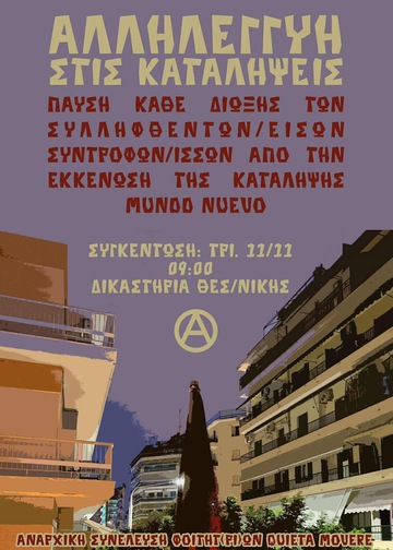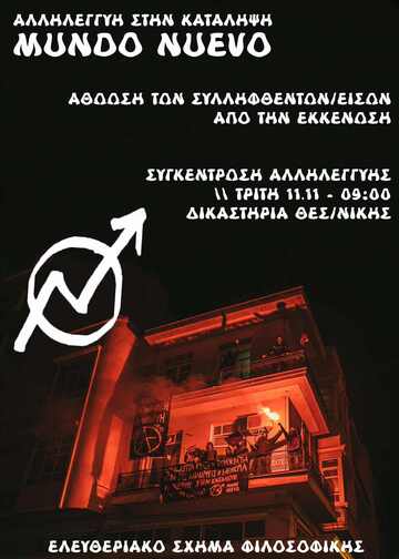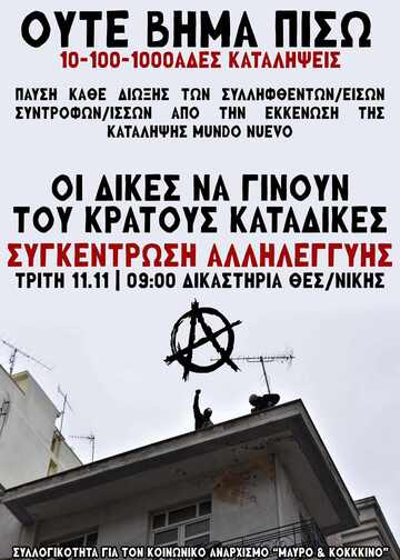 ΣΥΓΚΕΝΤΡΩΣΗ ΣΤΑ ΔΙΚΑΣΤΗΡΙΑ ΤΗΝ ΤΡΙΤΗ 11/11 στις 09.00 για τους/ις συλληφθέντες/εισες της εκκενωσης της Mundo Nuevo στις 28/11/22