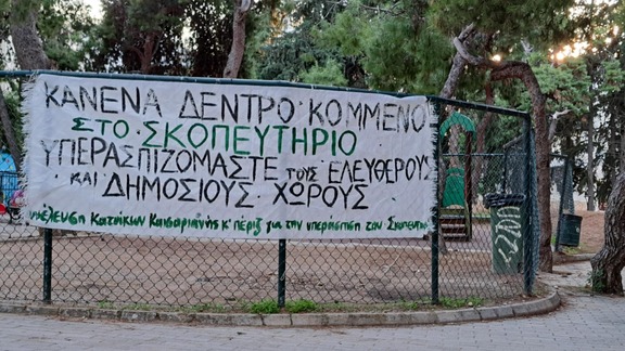 - Αν και τη θεωρούμε σημαντική και μια πρώτη νίκη του αγώνα μας, η αντίθεση μας δεν περιορίζεται μόνο στην κοπή δέντρων. Το έργο της διπλής ανάπλασης Πλατείας Καισαριανής-Σκοπευτηρίου χαρακτηρίζεται συνολικά από μια περιβαλλοντοκτόνα λογική "πράσινης ανάπτυξης" που εξυπηρετεί συμφέροντα εμπορευματοποίησης του χώρου και τουριστικοποίησης των γειτονιών μας. Έχουμε όλοι δει το τσιμεντένιο αίσχος που έφτιαξαν στην Πλατεία, προς χάριν των ιδιωτών και των τραπεζοκαθισμάτων. Ο ίδιος εργολάβος είναι στην κοινοπραξία που θα αναλάβει το τσιμεντάρισμα του Σκοπευτηρίου, για να κατασκευαστεί ένα φαραωνικών διαστάσεων θέατρο στη Σκοπευτική, χωρίς καμία πρόβλεψη για την περαιτέρω κυκλοφοριακή επιβάρυνση της γειτονιάς, ενώ προβλέπεται κι η κατασκευή ενός αναψυκτήριου που αναγκαστικά αργά ή γρήγορα θα λειτουργεί με ιδιωτικοοικονομικά κριτήρια.
