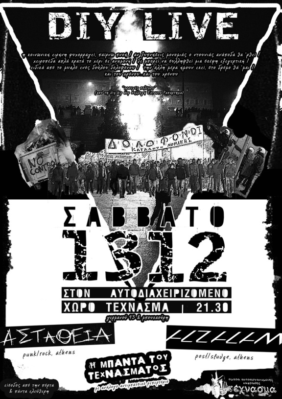 σάββατο 13 δεκέμβρη στις 21.30: DIY LIVE στον αυτοδιαχειριζόμενο χώρο Τέχνασμα