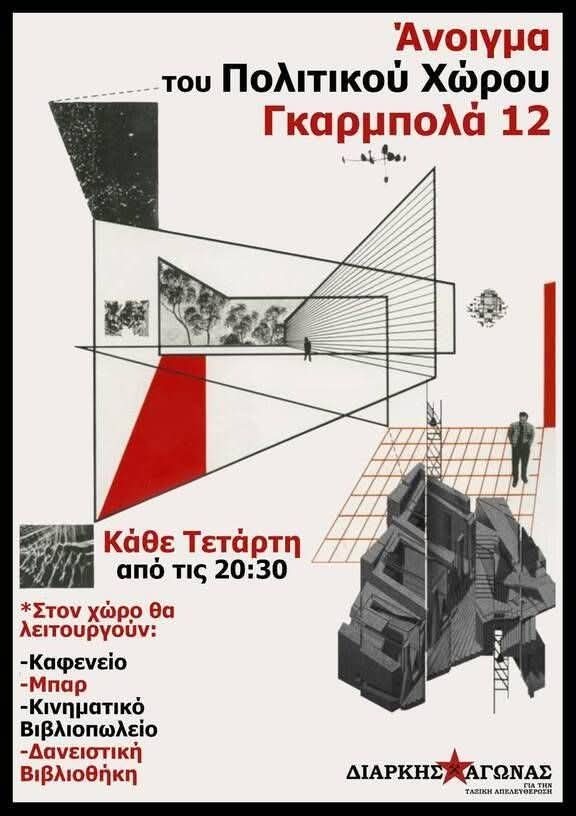 [Θεσσαλονίκη] 📌 Σήμερα Τετάρτη 3/12 και κάθε Τετάρτη από τις 20:30 άνοιγμα του πολιτικού χώρου του Διαρκής Αγώνας για την ταξική απελευθέρωση, στην Γκαρμπολά 12.