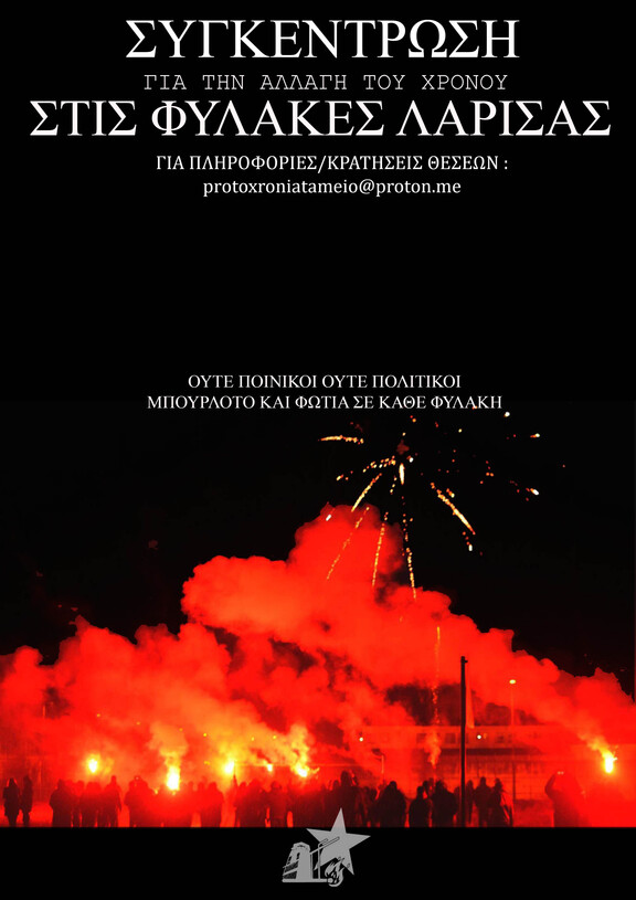 Kαι φέτος, παραμονή πρωτοχρονιάς, θα βρεθούμε δίπλα στους κοινωνικούς και πολιτικούς κρατούμενους στις φυλακές Λάρισας.