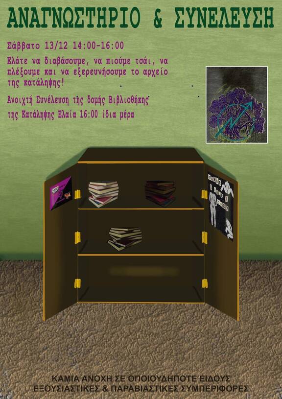 Το Σαββατό πάλι μαζευόμαστε να διαβάσουμε μαζί από το μεσημέρι (14:00) ενώ αργότερα (16:00) εκκινούμε διαδικασίες για διαμόρφωση δομής βιβλιοθήκης στον χώρο!