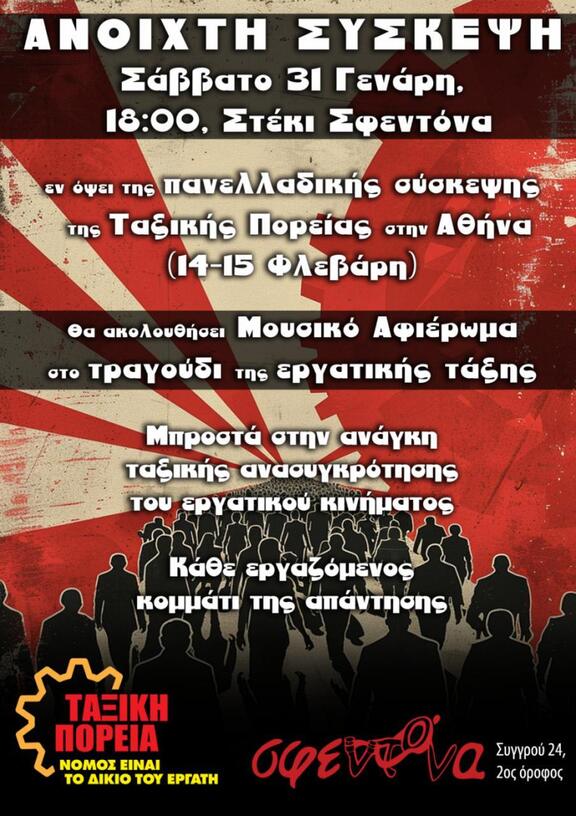 Ανοιχτή Σύσκεψη της Ταξικής Πορείας και αφιέρωμα στο τραγούδι της εργατικής τάξης
