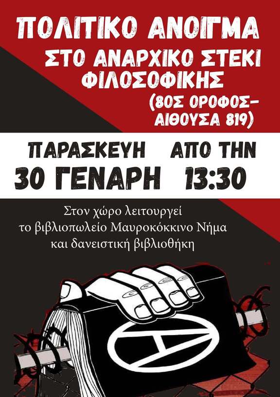 Πολιτικό άνοιγμα στο Αναρχικό Στέκι Φιλοσοφικής (8ος όροφος - αίθουσα 819)