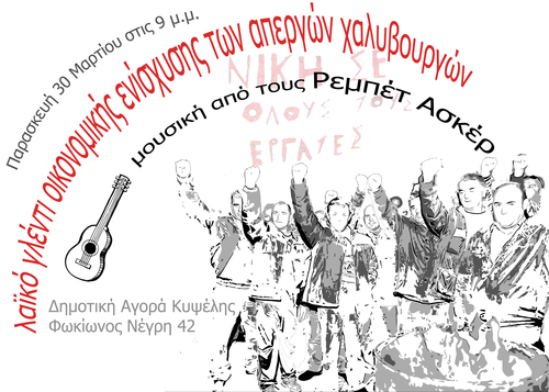 λαϊκό γλέντι οικονομικής ενίσχυσης των απεργών χαλυβουργών με μουσική από τους "Ρεμπέτ Ασκέρ".