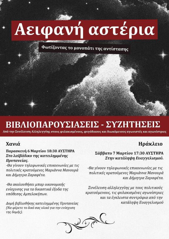 Βιβλιοπαρουσίαση- Συζήτηση: Αειφανή Αστέρια - Φωτίζοντας το μονοπάτι της αντίστασης.