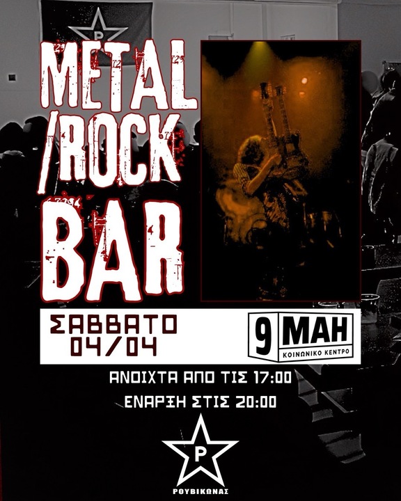 📍Σάββατο 04/04 στις 20:00: Metal/Rock Μπαρ οικονομικής ενίσχυσης.