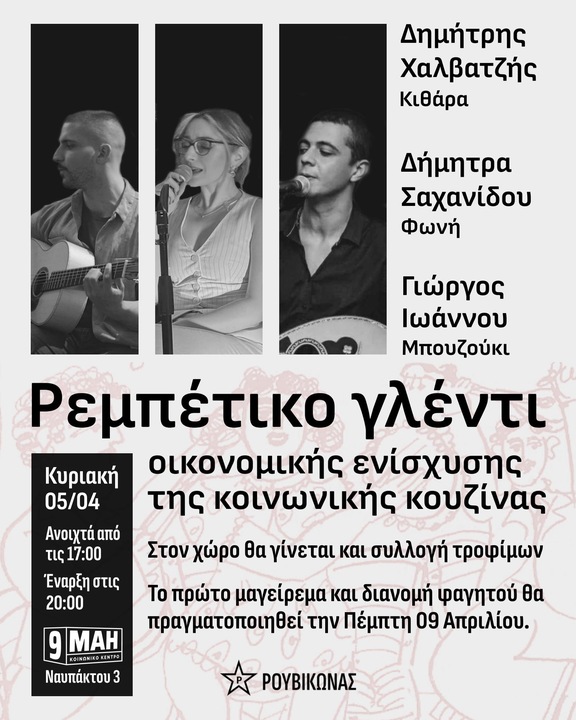 📍Κυριακή 05/04 μετά τις 20:00: Ρεμπέτικο γλέντι & συλλογή τροφίμων για τη δημιουργία κοινωνικής κουζίνας