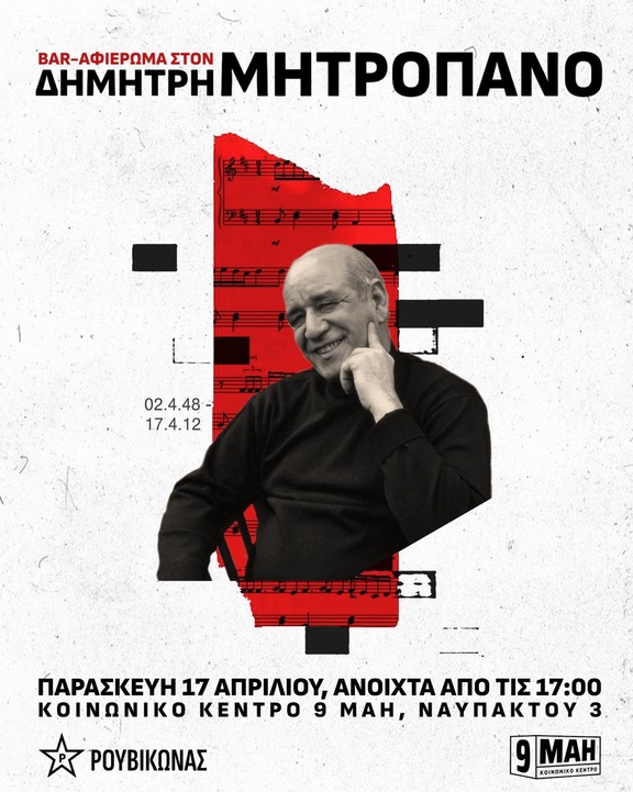 Μπαρ/Αφιέρωμα στον Δημήτρη Μητροπάνο στο Κοινωνικό Κέντρο «9 Μάη»