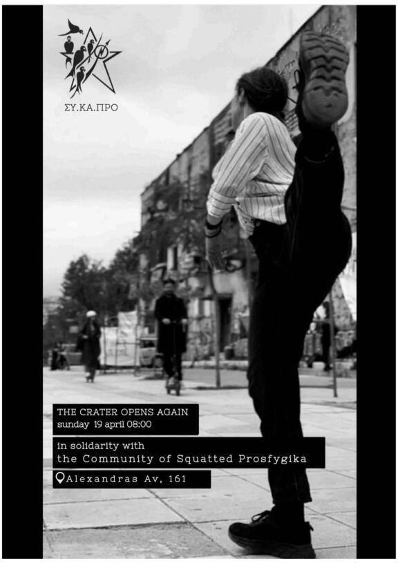 THE CRATER "reopens" on Sunday 19.04 at 08:00 in front of the first block of the Community of Squatted Prosfygika.