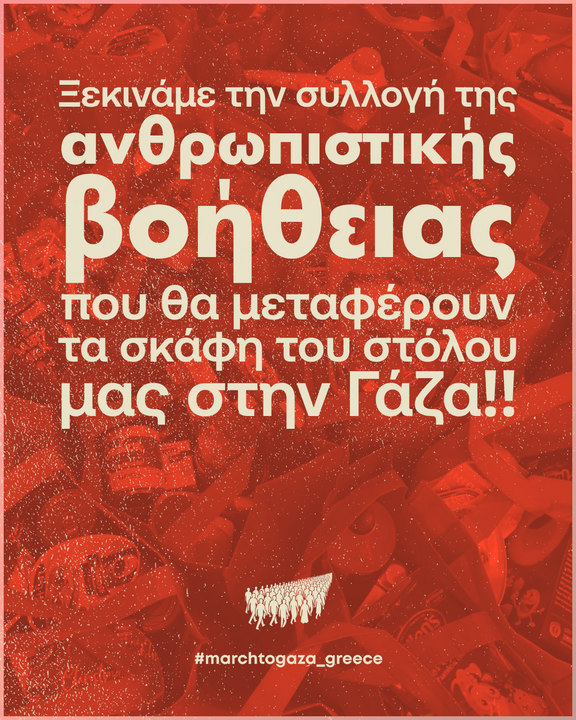 Ξεκινάμε την συλλογή της ανθρωπιστικής βοήθειας που θα μεταφέρουν τα σκάφη του στόλου μας στην Γάζα!!