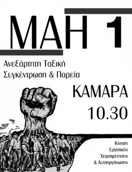 Σε αυτήν την κατεύθυνση η Κίνηση Εργατικής Χειραφέτησης και Αυτοοργάνωσης καλεί την Τρίτη 1η Μαϊου 10:00 π.μ. σε ανεξάρτητη ταξική πορεία από την Καμάρα και με επιστροφή σε αυτήν, με κατεύθυνση πρός τα Blé για την ενίσχυση του αγώνα που μένεται , όπου το αφεντικό έχει να πληρώσει τους εργαζόμενούς του κανονικά από τον περασμένο Μάιο, δίνοντας χαρτζιλίκια των 150 και 300 ευρώ, δεν πληρώνει υπερωρίες και δεν δίνει ρεπό και άδειες. Όλα αυτά σε ένα καθεστώς διευρυμένης εργοδοτικής τρομοκρατίας με απολύσεις όσων ζήτησαν τα δεδουλευμένα - δηλαδή το αυτονόητο και με κάμερες παρακολούθησης στον χώρο εργασίας. Κανένας εργαζόμενος να μην μείνει μόνος του μπροστά στην τρομοκρατία Κράτους και Κεφαλαίου. Αυτή η πρωτομαγιά να γίνει η αρχή οργανωμένων και μαζικών αγώνων.
