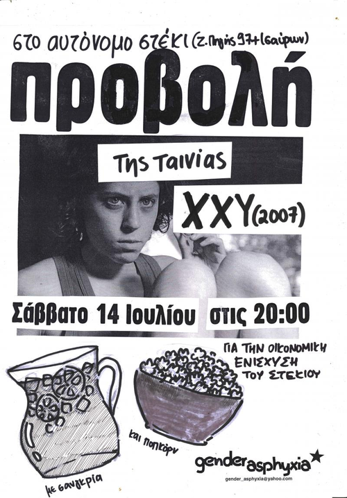 προβολή της ταινίας XXY, με ποπκορν και σαγκρία για την οικονομική ενίσχυση του στεκιού