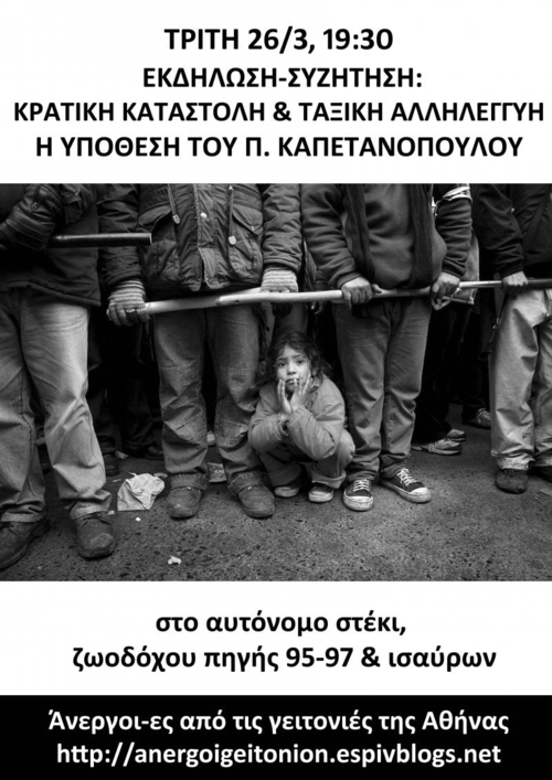 Εκδήλωση: Κρατική καταστολή και ταξική αλληλεγγύη-Υπόθεση Καπετανόπουλου