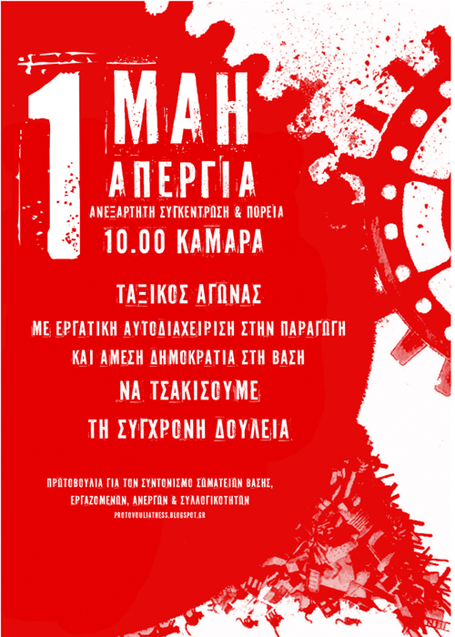 Συμμετοχή στην ανεξάρτητη ταξική συγκέντρωση και πορεία. Η ΑΥΤΟΔΙΑΧΕΙΡΙΣΗ ΕΙΝΑΙ ΤΟ ΟΠΛΟ ΜΑΣ