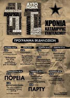 ΣΑΒΒΑΤΟ 29/6/13 : ώρα : 18:00 -Συζήτηση : Πανελλαδική συνάντηση μέσων αντιπληροφόρησης - ώρα : 23:00-Πάρκο ξενία : Πάρτυ γενεθλίων .