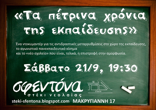 Προβολή ντοκυμαντέρ για την εκπαίδευση: Τα πέτρινα χρόνια της εκπαίδευσης