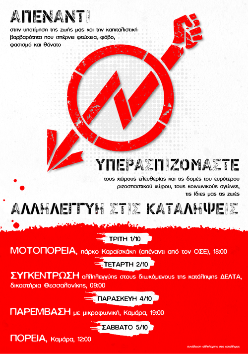 Συγκέντρωση Αλληλεγγύης: Τετάρτη 2/10, 9πμ Δικαστήρια Θεσ/νίκης