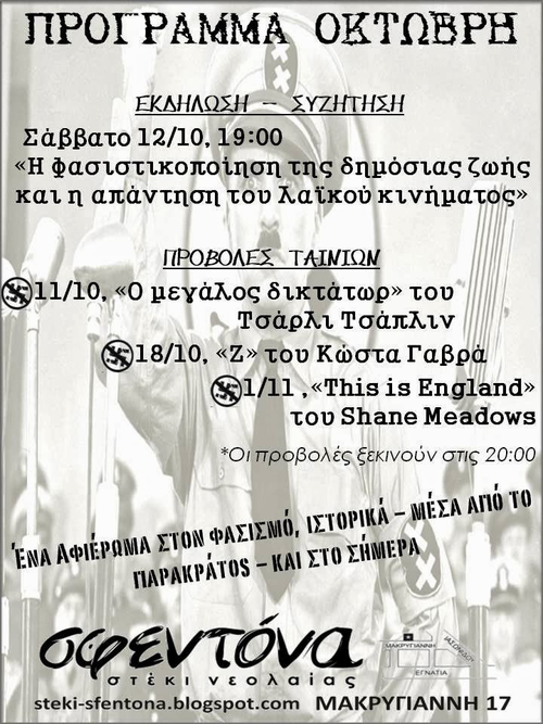 τι; : προβολή θεματική : αντιφασισμός από : Στέκι Νεολαίας Σφεντόνα