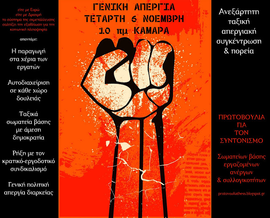 ΚΑΙ ΣΥΝΕΧΙΖΟΥΜΕ ΤΗΝ ΤΕΤΑΡΤΗ 6 ΝΟΕΜΒΡΗ ΣΤΗ ΓΕΝΙΚΗ ΑΠΕΡΓΙΑ