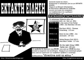 Σύμφωνα με βάσιμες πληροφορίες , θα ξεκινήσουν εβδομαδιαίες προβολές ταινιών στο άντρο των αναρχικών , των προβοκατόρων και αιμοδιψών κουκουλοφόρων , την Κατάληψη Ευαγγελισμού.