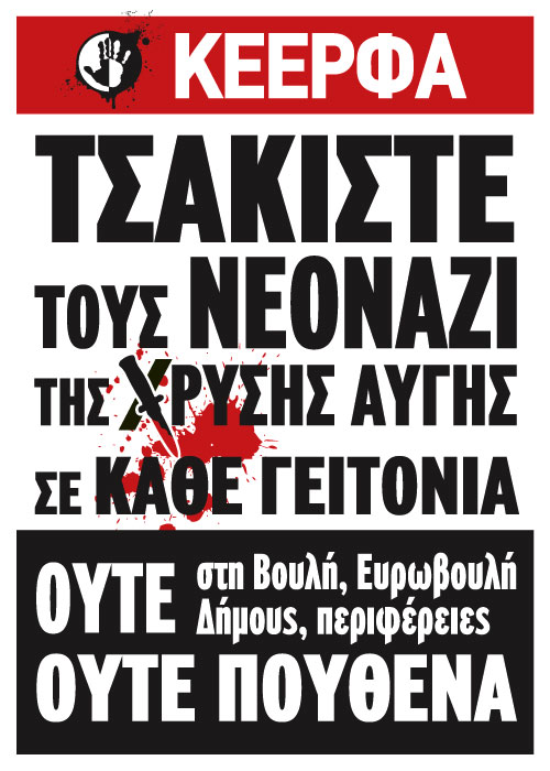 Οι δολοφόνοι νεοναζί είναι ανεπιθύμητοι στις γειτονιές μας. Θέλουμε να ζούμε πλάι- πλάι ντόπιοι και μετανάστες και να παλεύουμε για να αλλάζουμε την κοινωνία της φτώχειας και της εκμετάλλευσης.
