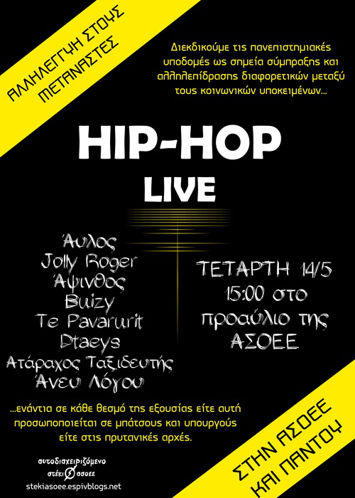πηγή : http://stekiasoee.espivblogs.net/2014/05/09/hip-hop-live-%ce%b1%ce%bb%ce%bb%ce%b7%ce%bb%ce%b5%ce%b3%ce%b3%cf%8d%ce%b7%cf%82-%cf%83%cf%84%ce%bf%cf%85%cf%82-%ce%bc%ce%b5%cf%84%ce%b1%ce%bd%ce%ac%cf%83%cf%84%ce%b5%cf%82-%cf%84%ce%b5%cf%84%ce%ac/