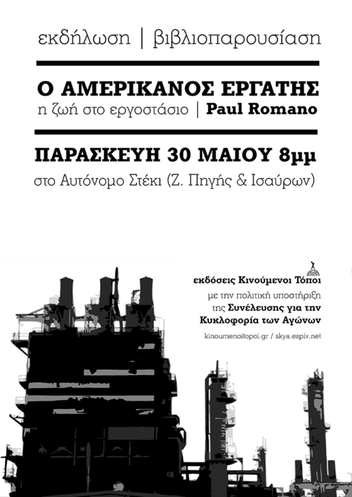 Εκδήλωση/βιβλιοπαρουσίαση: Ο Αμερικανός εργάτης (η ζωή στο εργοστάσιο)