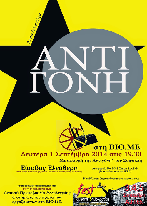 ΑΝΤΙΓΟΝΗ* από τους theatre de Votanique με ελεύθερη είσοδο.