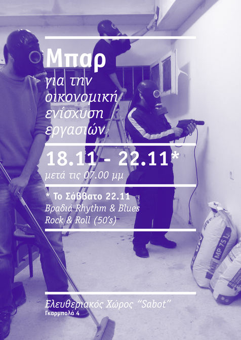 Το μπαρ του ελευθεριακού χώρου "Sabot" θα λειτουργήσει καθημερινά από τις 07.00μμ τις παρακάτω μέρες: