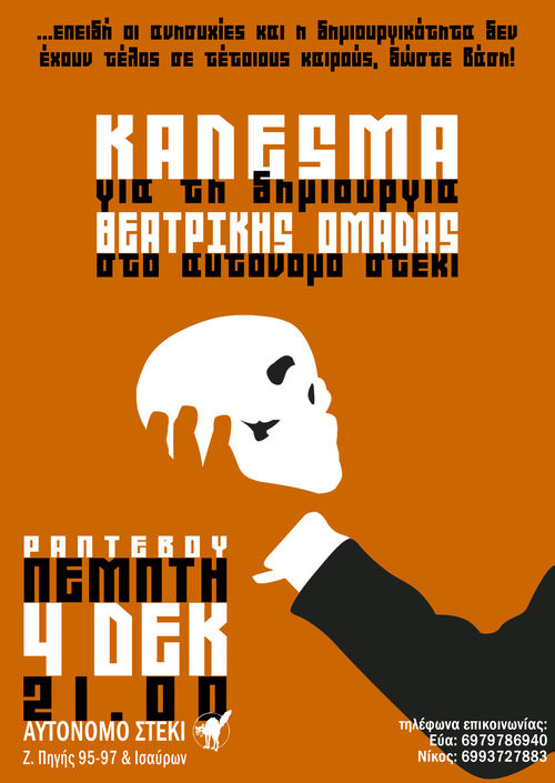 πηγή : http://autonomosteki.espivblogs.net/2014/11/26/%CE%BA%CE%AC%CE%BB%CE%B5%CF%83%CE%BC%CE%B1-%CE%B3%CE%B9%CE%B1-%CF%84%CE%B7%CE%BD-%CE%B4%CE%B7%CE%BC%CE%B9%CE%BF%CF%85%CF%81%CE%B3%CE%AF%CE%B1-%CE%B8%CE%B5%CE%B1%CF%84%CF%81%CE%B9%CE%BA%CE%AE%CF%82/