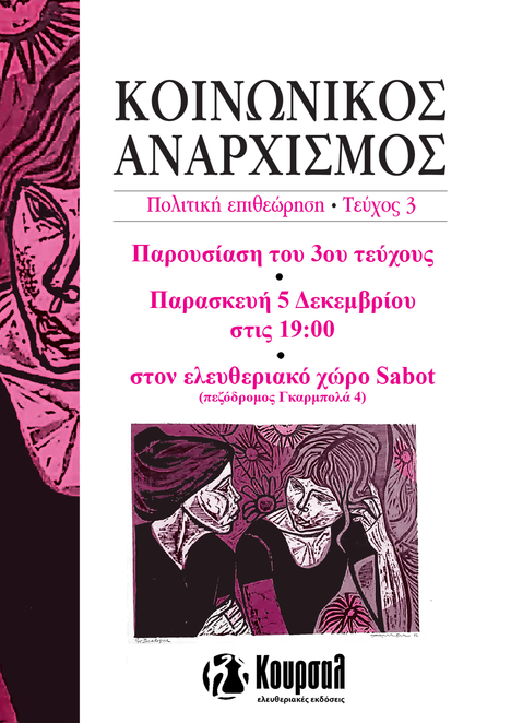 Κυκλοφόρησε από τις Ελευθεριακές Εκδόσεις Κουρσάλ το 3ο τεύχος της πολιτικής επιθεώρησης «Κοινωνικός Αναρχισμός», έχοντας ως κύρια θεματική το έμφυλο ζήτημα. Τα άρθρα του 3ου τεύχους είναι: