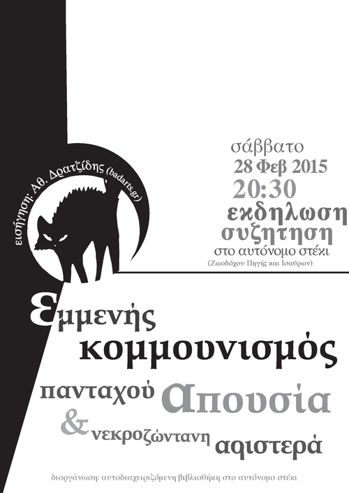 Εκδήλωση-συζήτηση: εμμενής κομμουνισμός, πανταχού απουσία & νεκροζώντανη αριστερά