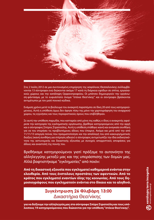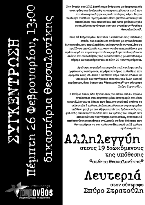 26/2/15 στη 13:00 - συγκέντρωση αλληλεγγύης και μετά τις 22:00 bar οικονομικής ενίσχυσης για την υπόθεση "στέκια θεσ/νίκης"