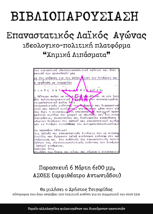 Βιβλιοπαρουσίαση για τον Επαναστατικό Λαϊκό Αγώνα