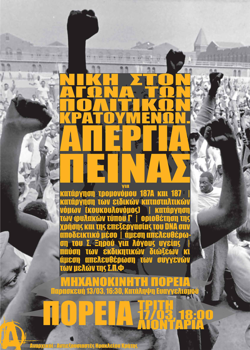 ΠΡΟΓΡΑΜΜΑ ΔΡΑΣΕΩΝ ΑΛΛΗΛΕΓΓΥΗΣ ΣΤΟΥΣ ΠΟΛΙΤΙΚΟΥΣ ΚΡΑΤΟΥΜΕΝΟΥΣ ΑΠΕΡΓΟΥΣ ΠΕΙΝΑΣ | ΜΗΧΑΝΟΚΙΝΗΤΗ ΠΟΡΕΙΑ 13/3 -ΩΡΑ:16:30 | ΠΟΡΕΙΑ 17/3 -ΩΡΑ:18:00