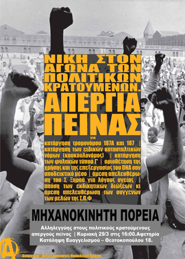 Μηχανοκίνητη πορεία αλληλεγγύης στους πολιτικούς κρατούμενους απεργούς πείνας Κυριακή 29/3/15 στις 16:00.Αφετηρία : Κατάληψη Ευαγγελισμού - Θεοτοκοπούλου 18.