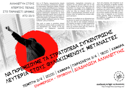 Ενημέρωση-προβολή αλληλεγγύης στους μετανάστες απεργούς πείνας στο Παρανέστι