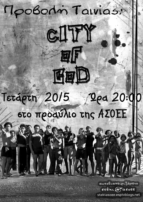 City of God. Πέμπτη 20/5 στις 20:00 στο προαύλιο της ΑΣΟΕΕ.