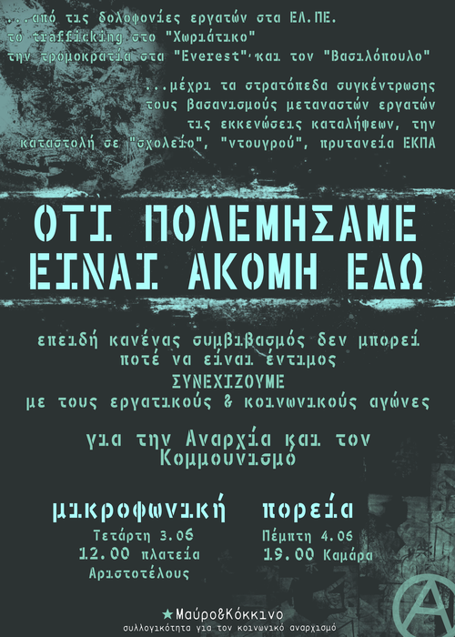 …από τις δολοφονίες εργατών στα ΕΛ.ΠΕ. , το trafficking στο »Χωριάτικο», την τρομοκρατία των αφεντικών στα »Everest» και τον »Βασιλόπουλο»