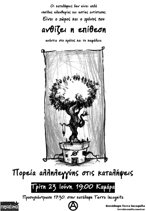 πορεία αλληλεγγύης στις καταλήψεις Τρίτη 23/6, Καμάρα 19:00