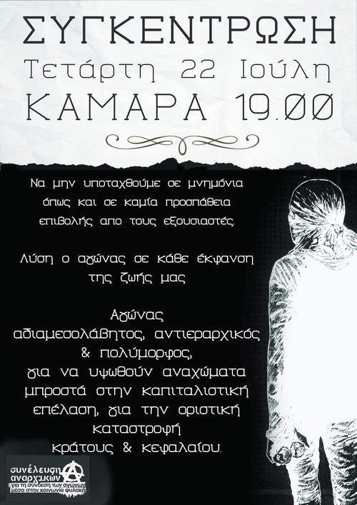 Όλοι στη συγκέντρωση της Καμάρας, ΤΕΤΑΡΤΗ 22 Ιουλίου 19.00
