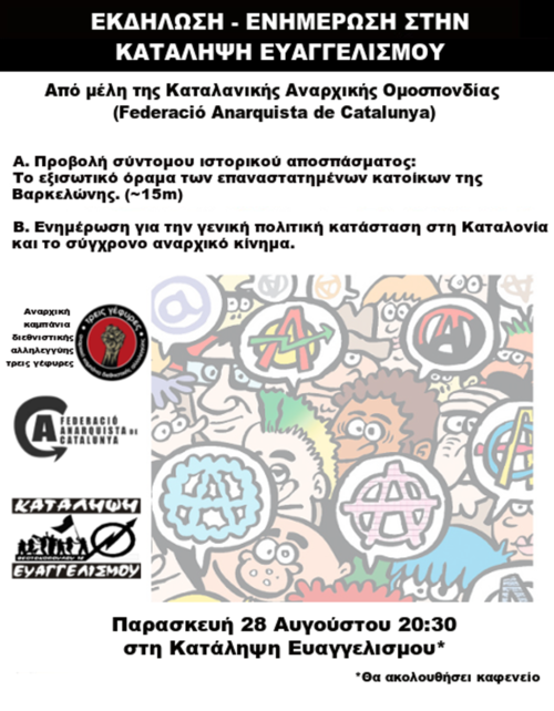 Εκδήλωση με μέλη της Καταλανικής Αναρχικής Ομοσπονδίας & καφενείο
