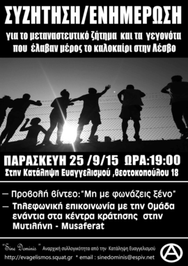 Παρασκευή 25 Σεπτεμβρίου 2015 ,ώρα : 19:00 στην Κατάληψη Ευαγγελισμού (θεοτοκοπούλου 18 ,Ηράκλειο Κρήτης)