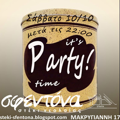 Πάρτυ το Σάββατο 10/10 μετά τις 20:00 στο στέκι Σφεντόνα!