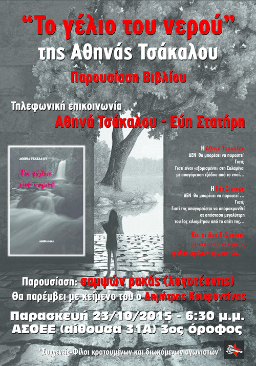 Βιβλιοπαρουσίαση του βιβλίου της Αθηνάς Τσάκαλου Το γέλιο του νερού
