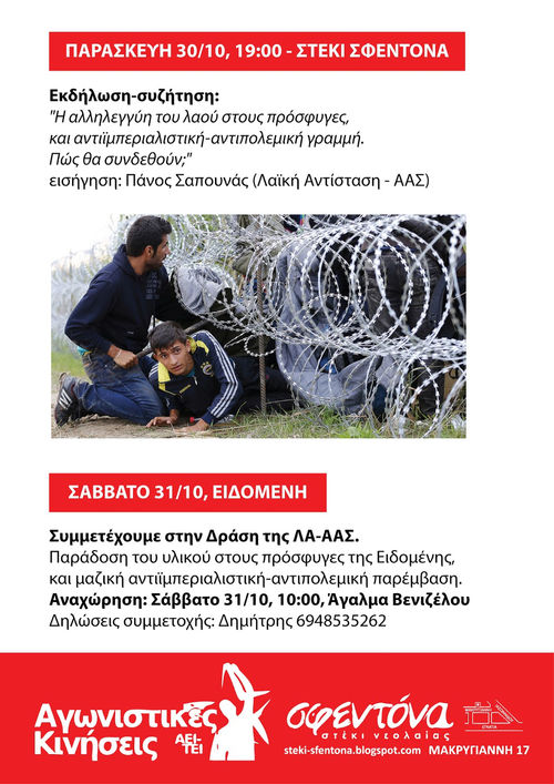 "Η αλληλεγγύη του λαού στους πρόσφυγες, και αντιιμπεριαλιστική-αντιπολεμική γραμμή.