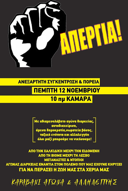 ΚΑΛΕΣΜΑ ΣΤΗΝ ΠΑΝΕΛΛΑΔΙΚΗ ΑΠΕΡΓΙΑ 12ης ΝΟΕΜΒΡΗ