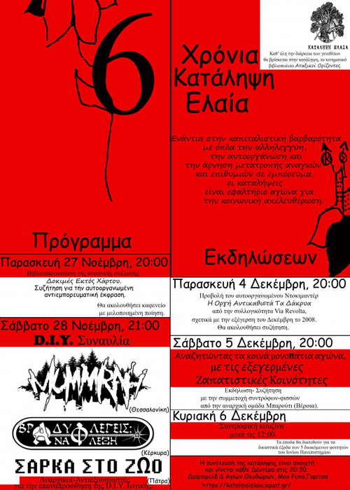 6 χρόνια Κατάληψη Ελαία - Πρόγραμμα εκδηλώσεων (Κέρκυρα)