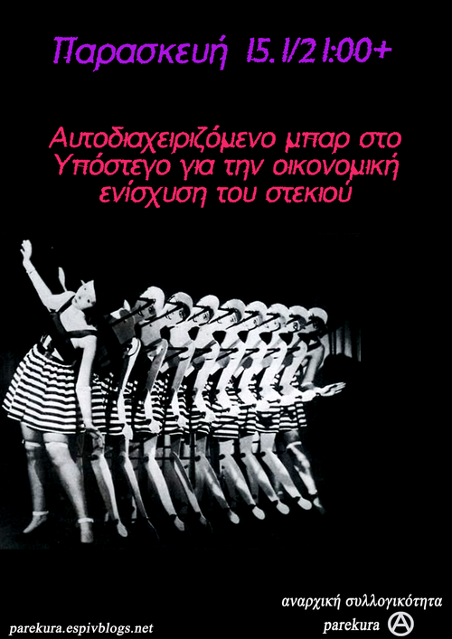 Το αυτοδιαχειριζόμενο bar του Υποστέγου γίνεται πλέον κάθε Παρασκευή στις 21:00. Αυτή τη Παρασκευή το αναλαμβάνει η parekura.